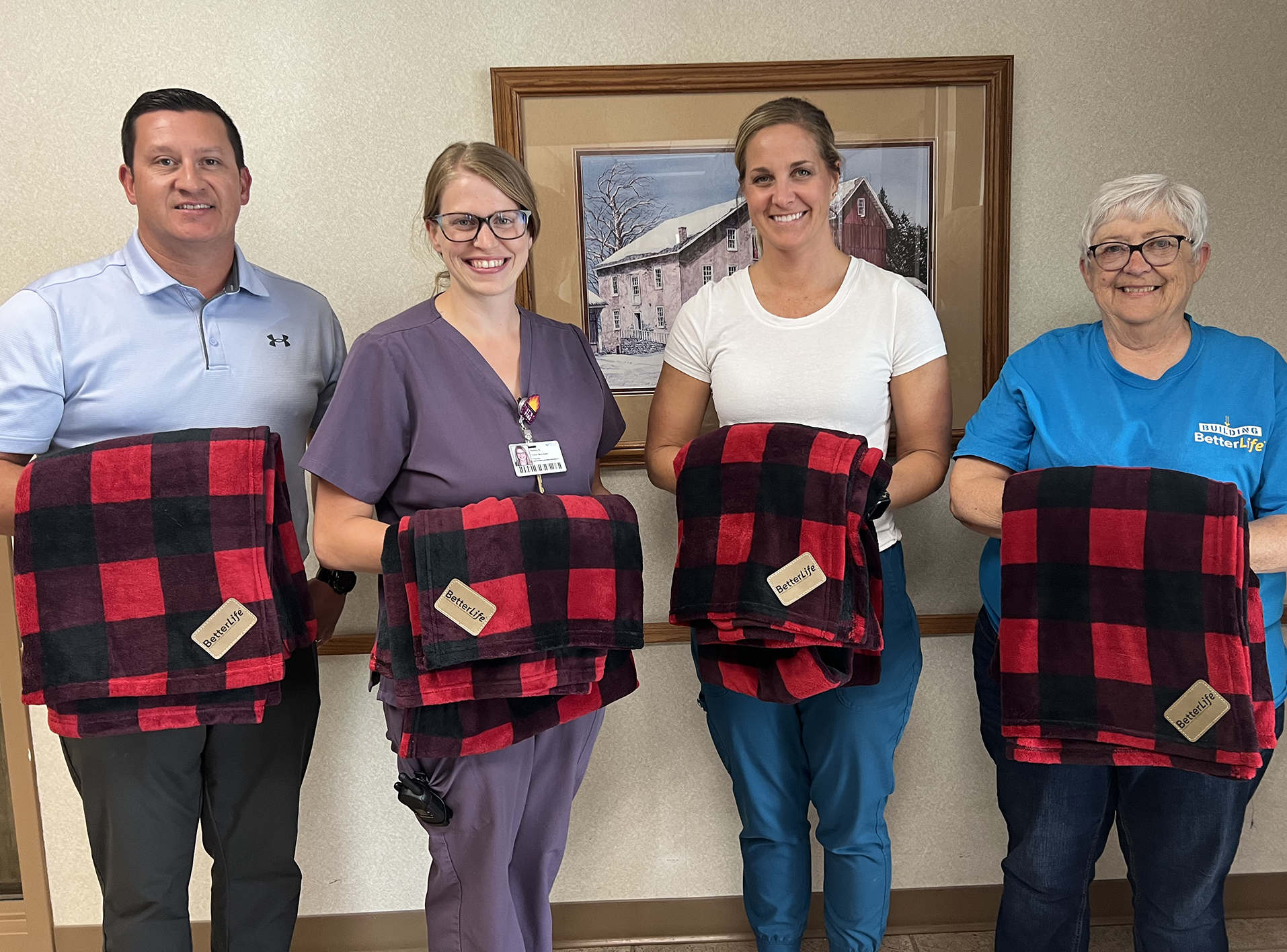 Better Life representative Joel Spry and volunteer Linda Kroetch generously donated soft and cozy blankets for the winter blanket drive organized by Philip Health Services’ Health Equity Team, led by Haley Ehlers and Ashley Slovek.